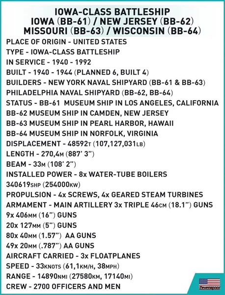 4836 Cobi WWII IOWA-CLASS BATTLESHIP- EXECUTIVE EDITION